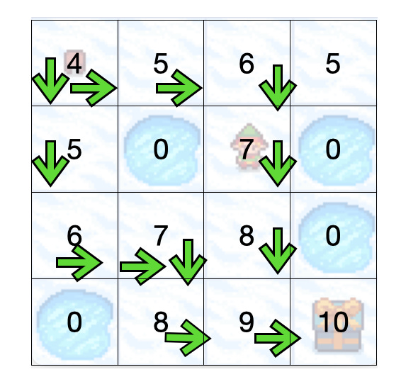 And Voila! Little Billy the elf now knows how to navigate the frozen lake to reach the sweeties. He’s out to have a little feast!