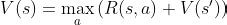 The value of the current state is equal to the maximum value of possible next states plus the reward of moving that that state.