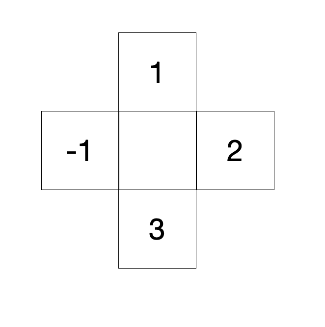 Each state is represented by each of the squares. Some of them are empty, some of them have deadly holes and one of them has a big box of sweeties!